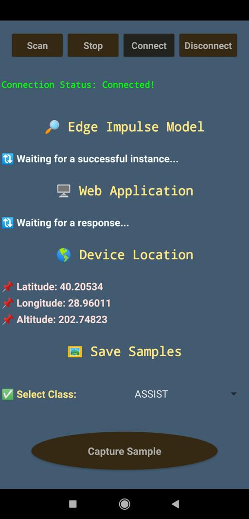 📲 ♿ 🌎 After detecting an emergency class, XIAO ESP32S3 transfers the model detection results to the Android application via BLE.