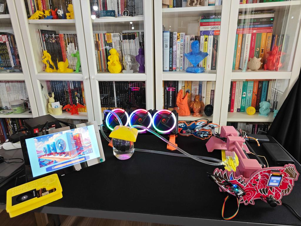 After perusing recent research papers on detecting component failures to automate HVAC maintenance, I noticed that there are no practical applications focusing on identifying component abnormalities of intricate water-based HVAC systems to diagnose consecutive thermal cooling malfunctions before instigating hazardous effects on both production quality and the environment. Hence, I decided to build a versatile multi-model AIoT device to detect anomalous sound emanating from cooling fans via a neural network model and to diagnose consecutive thermal cooling malfunctions based on specifically produced thermal images via a visual anomaly detection model. In addition to AI-driven features, I decided to develop a capable and feature-rich web application (dashboard) to improve user experience and make data transfer easier between development boards.