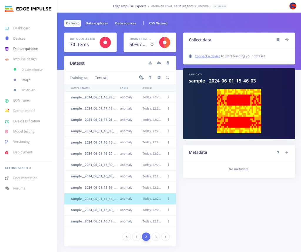⚠️🔊♨️🖼️ However, instead of saving the produced image as a sample directly, the web application runs an inference with the Edge Impulse FOMO-AD visual anomaly detection model to diagnose consecutive thermal cooling malfunctions of HVAC system components after anomalous sound detection.