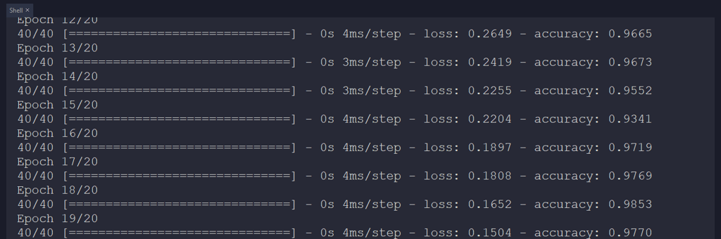 My neural network model predicts possibilities of labels (irrigation classes) for each given input (thermal imaging array) as an array of 4 numbers. They represent the model's "confidence" that the given input array corresponds to each of the four different irrigation classes based on thermal imaging [0 - 3], as shown in Step 5: