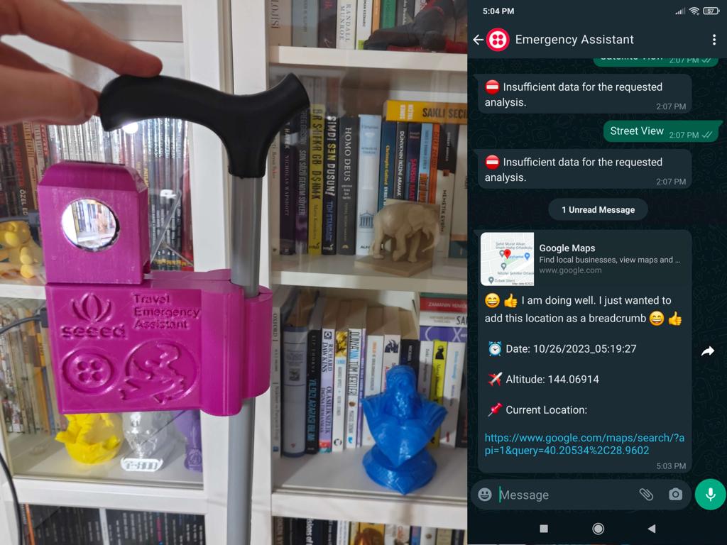 📲 ♿ 🌎 Then, the web application sends the generated location inspection as feedback to the primary emergency contact over WhatsApp.