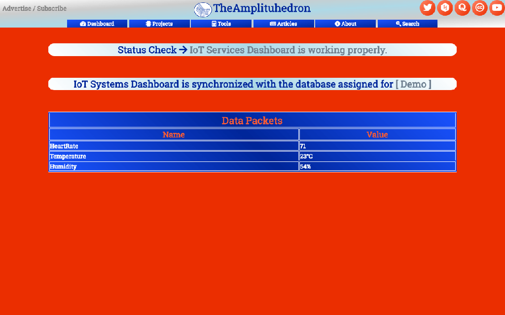 Aside from the cloud system of TheAmplituhedron used in other projects of mine, TheAmplituhedron IoT Services is for displaying and saving data packets received from NodeMCU etc. in HTTP Get Request Method only. Like the cloud system of TheAmplituhedron that can receive and transmit data packets through web server in either HTTP Get Request or HTTP Post Request, specialized for Arduino Ethernet Shield and Raspberry Pi, TheAmplituhedron IoT Services is programmed by myself in PHP, jQuery and AJAX as an available system for only my website subscribers. But, as opposed to the cloud system of TheAmplituhedron, it can only receive data packets in HTTP Get Request Method, and display recent data packets only; TheAmplituhedron IoT Services is dedicated to showing the recent data gathered by NodeMCU etc. via sensor readings properly through TheAmplituhedron database and server. To use this feature, please follow the steps down below and subscribe to my website if you have not yet.