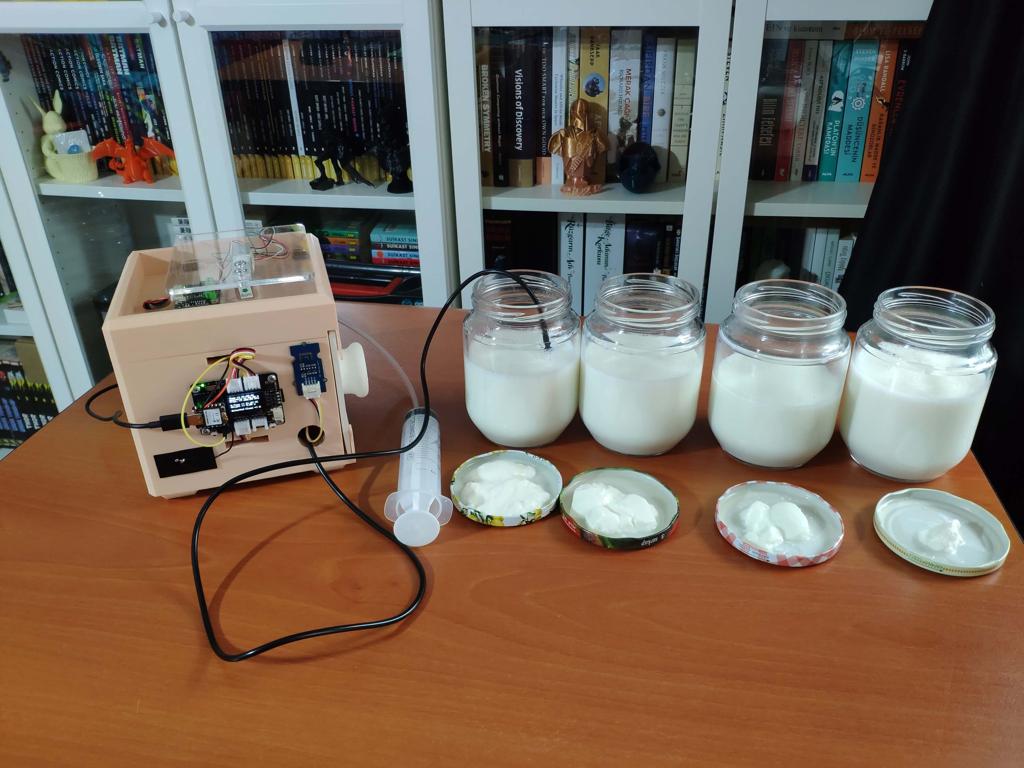 After perusing recent research papers on yogurt production, I decided to utilize temperature, humidity, pressure, milk temperature, and culture weight measurements denoting yogurt consistency before fermentation so as to create an easy-to-use and budget-friendly device in the hope of assisting dairies in reducing total cost and improving product quality.