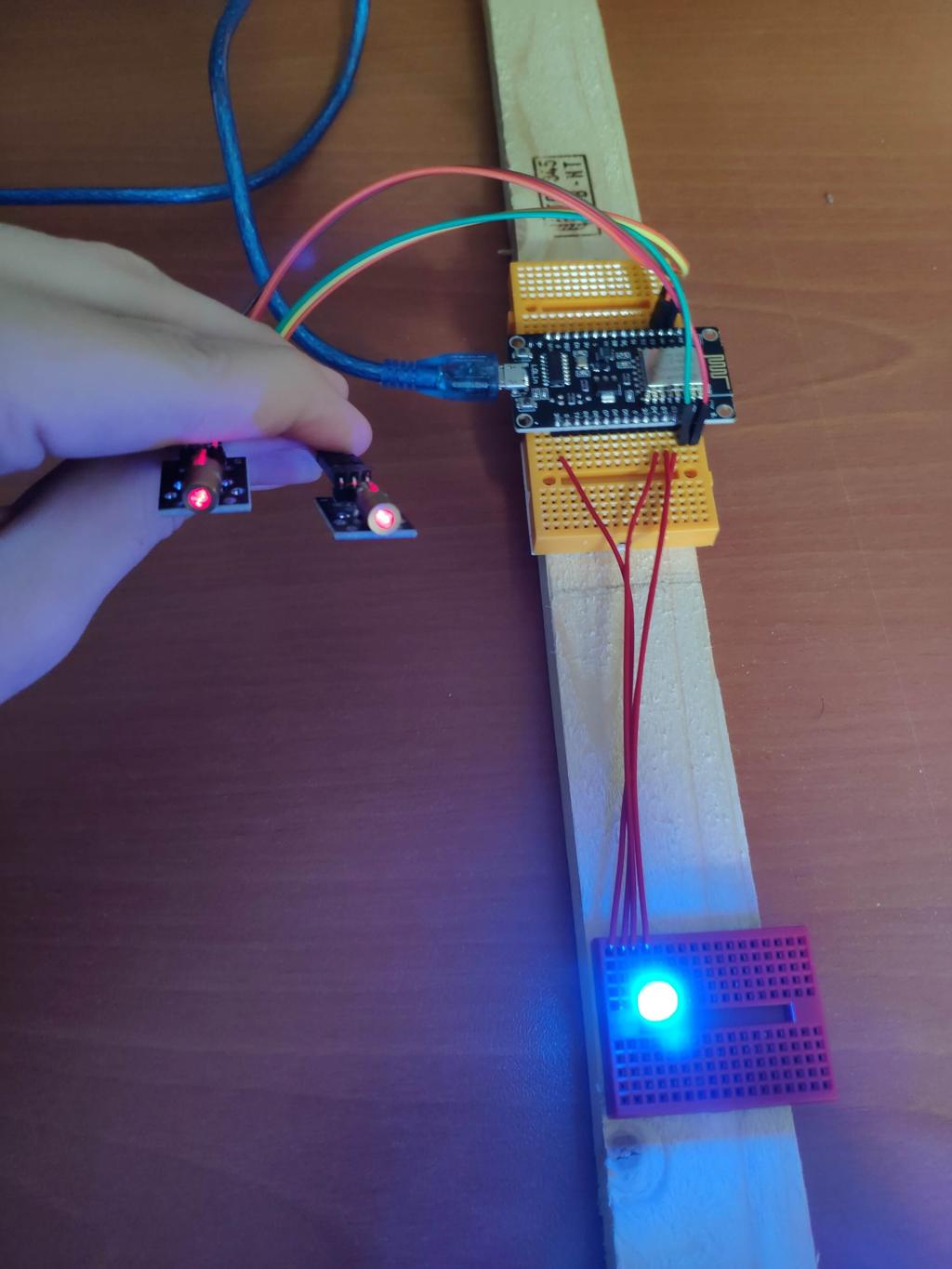 I connected two laser modules as laser beam guns and an RGB led as the base lighting, you can find pin connections on the source code or the schematic down below.