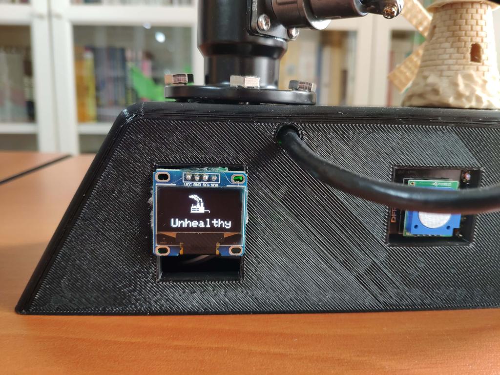 🌳🏭 Then, the weather station displays the output, which represents the most accurate label (air quality class) predicted by the model.