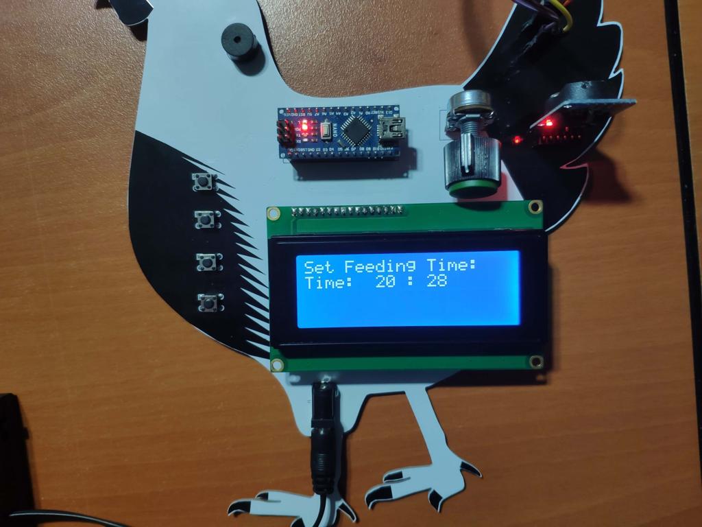 To create an interface to display the mentioned variables, check the device status, set the feeding time, and monitor the remaining time to the feeding time, I used a 20x4 LCD Screen and pushbuttons.